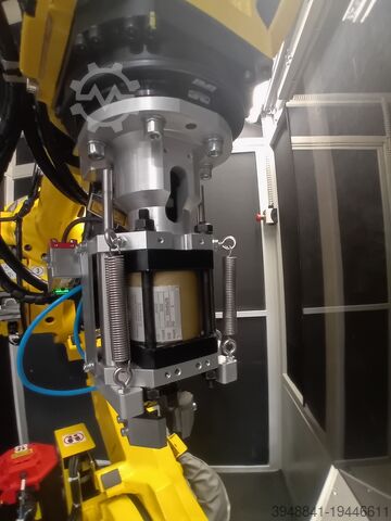 Робот Fanuc R100iA в кожухе с головкой для нумерации. В комплекте полный набор штампов A-Z, 0-9, для маркировки вращающихся элементов. Состояние робота как новое, работал только на тестах.