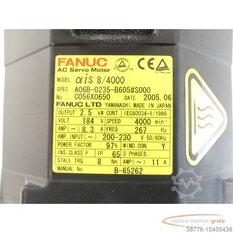 Серводвигатель переменного тока Fanuc A06B-0235-B605 # S000 серийный номер: C056X0650 с серийным номером импульсного декодера A860-2010-T341, б/у, незначительные следы износа, 100% работоспособность, комплект поставки соответствует фотографиям