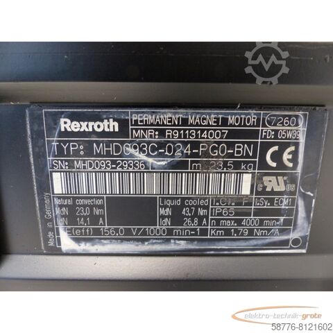 Двигатель с постоянными магнитами Rexroth MHD093C-024-PG0-BN, серийный номер: MHD093-29336, профессионально отремонтирован и протестирован, с 12-месячной гарантией, 100% работоспособен, комплект поставки соответствует фотографиям, согласованные скидки на данный товар не распространяются. Цену уточняйте отдельно!