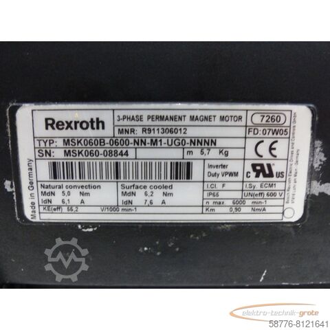Rexroth MSK060B-0600-NN-M1-UG0-NNN MNR: R911306012 Двигатель с постоянным магнитом, серийный номер в соответствии с фото, б/у, нормальные следы износа, 100% работоспособность, комплект поставки в соответствии с фотографиями