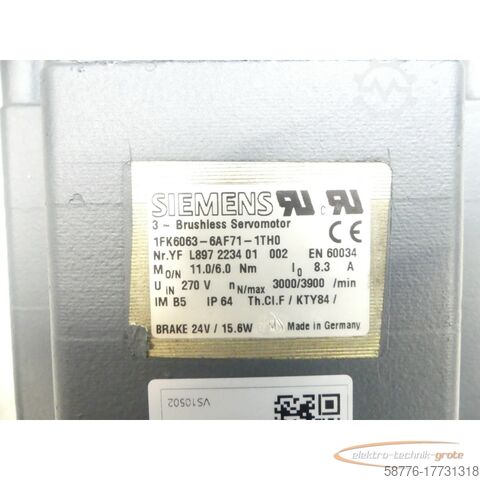 Синхронный серводвигатель Siemens 1FK6063-6AF71-1TH0, серийный номер: YFL897223401002, профессионально полностью отремонтирован и протестирован, с гарантией 12 месяцев, 100% работоспособен, комплект поставки соответствует фотографиям, б/у, хорошее состояние, 100% работоспособен, комплект поставки соответствует фотографиям