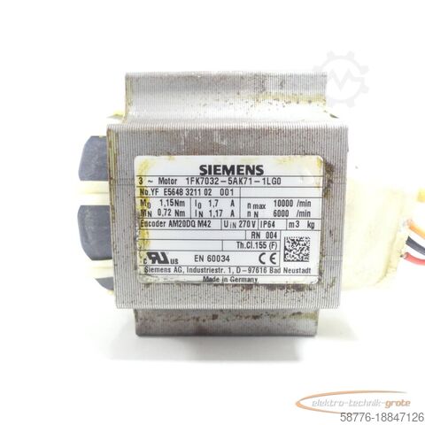 Корпус Siemens 1FK7032-5AK71-1LG0 со статором SN:YFE5648321102001, б/у, нормальные следы износа, 100% работоспособность, комплект поставки согласно фотографиям Lsc R Nev Ugp Asc Ifnjrn