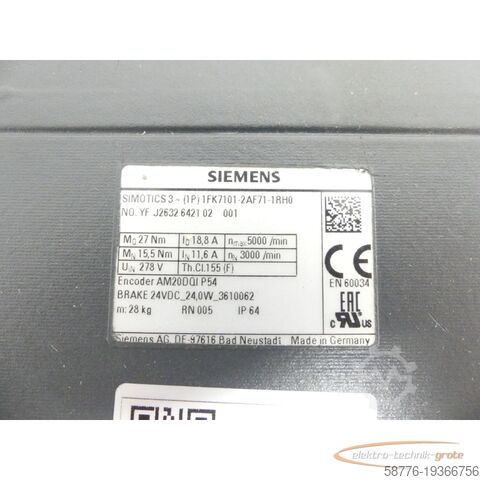 Серводвигатель Siemens 1FK7101-2AF71-1RH0, серийный номер: YFJ2632642101001, полностью отремонтирован, гарантия 12 месяцев, стоимость ремонта составила 690,40 евро, профессионально полностью отремонтирован и протестирован, гарантия 12 месяцев, 100% работоспособен, комплект поставки соответствует фотографиям.