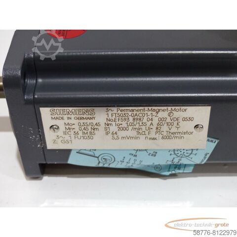 Двигатель с постоянными магнитами Siemens 1FT5032-0AC01-1-Z, Z= см. заводскую табличку SN:EF593898704002, неиспользованный, в открытой оригинальной упаковке, 100% работоспособен, комплект поставки соответствует фотографиям