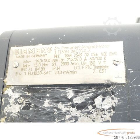 Siemens 1FT5074-0AC01-0 - Z Двигатель с постоянными магнитами Z= см. заводскую табличку, серийный номер: E1S64234902026, двигатель был отремонтирован на заводе Siemens, а затем долгое время хранился, бывший в употреблении, нормальные признаки износа, 100% работоспособность, комплект поставки соответствует фотографиям