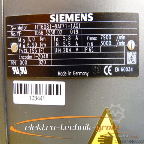 Трехфазный серводвигатель Siemens 1FT6081-8AF71-1AG1, серийный номер указан на фото, не использовался, в оригинальной упаковке, восстановленный, с гарантией 12 месяцев, 100% работоспособен.