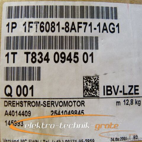 1FT6081-8AF71-1AG1 Drehstrom-Servomotor generalüberholt mit 12 Monaten Gewährleistung! -