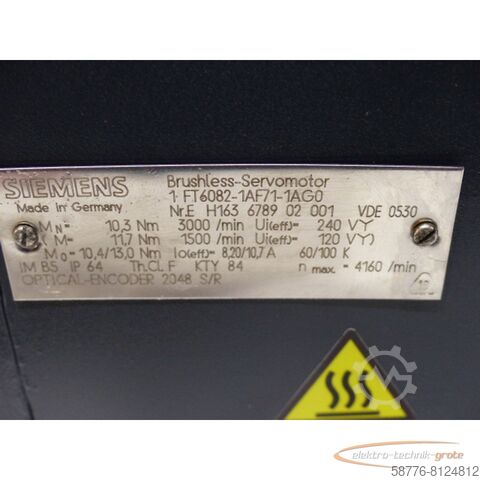 Бесщеточный серводвигатель Siemens 1FT6082-1AF71-1AG0, серийный номер согласно фотографии, профессионально полностью отремонтирован и протестирован, гарантия 12 месяцев, 100% работоспособность, комплект поставки согласно фотографии, согласованные скидки на продажу не распространяются на данный товар. Пожалуйста, запрашивайте цену отдельно!