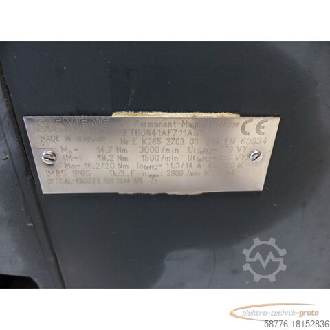 Двигатель Siemens 1FT6084-1AF71-1AG1 с постоянными магнитами SN:EK265270303014, б/у, сильные следы износа, 100% работоспособность, комплект поставки согласно фотографиям Lec R Nc Ievl Upfefnern