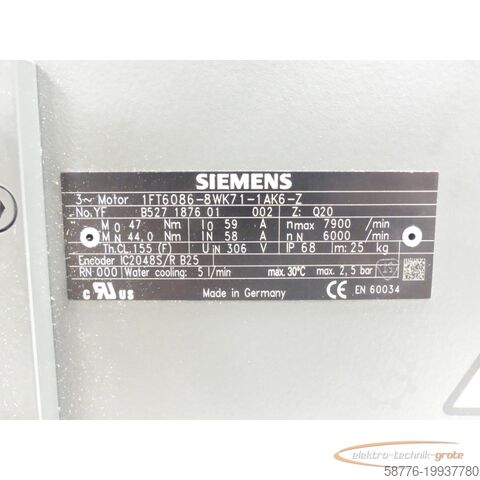 Синхронный серводвигатель Siemens 1FT6086-8WK71-1AK6- Z SN:YFB527187601002, Z = см. заводскую табличку, не использовался со знаками хранения, 100% работоспособен, комплект поставки согласно фотографиям