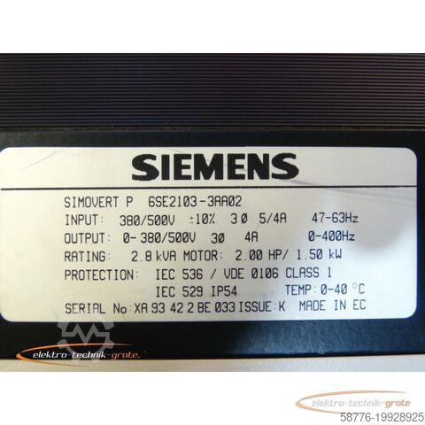 Компонент Siemens Siemens 6SE2103-3AA02 SIMOVERT P