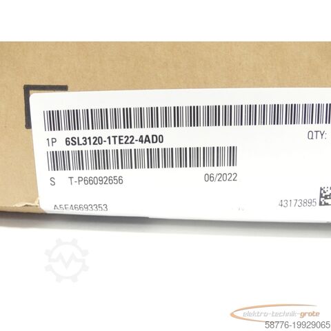 Siemens 6SL3120-1TE22-4AD0 Одномоторный модуль серийный номер T-P66092656, неиспользованный, в запечатанной оригинальной упаковке, 100% работоспособен, комплект поставки соответствует фотографиям