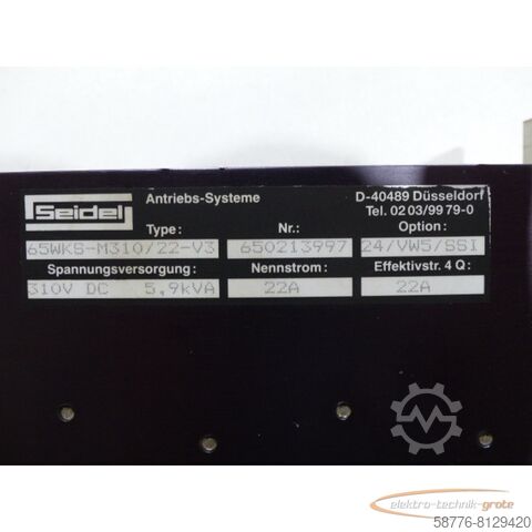 Seidel 65WKS-M310/22-V3 - сервоусилитель 65WKS-M310 / 22-V3 5,9 кВА, серийный номер. как на фото, б/у, нормальные следы износа, 100% работоспособность, комплект поставки как на фото