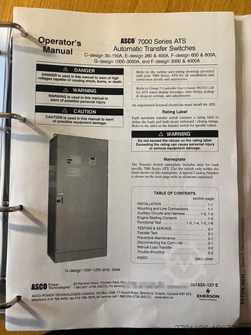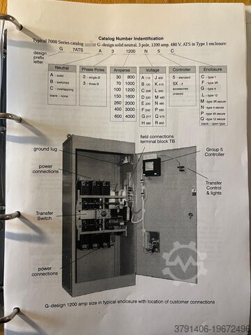 Высокопроизводительный автоматический переключатель ввода резерва (ATS) серии ASCO 7000, предназначен для критических систем электропитания в дата-центрах, медицинских учреждениях, промышленных объектах и резервных системах энергоснабжения. Данная модель в исполнении G («жёсткий нейтральный провод») рассчитана на ток до 1200 А, трехфазная, оснащена контроллером Group 5 и корпусом типа 1 (для внутренней установки).
