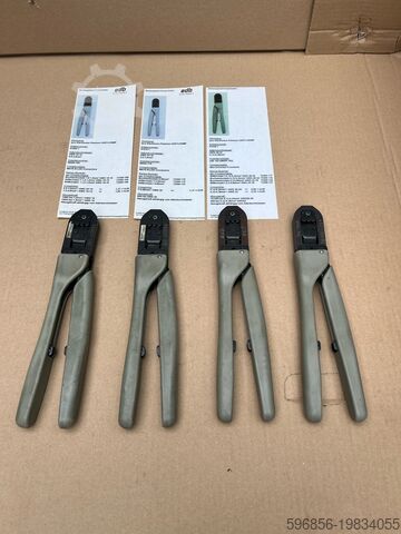 Продается комплект из 4 профессиональных обжимных инструментов Tyco Electronics Premium CERTI-CRIMP, используемых в электронной промышленности, автоматизации и сервисе кабельных жгутов. Оборудование с полной документацией (eDB-карты) – готово к работе, каждый обжимной инструмент предназначен для определенного типа коннекторов.
