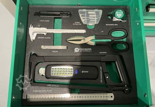 Предметом продажи является тележка для тяжелых инструментов STAHLGRUPPE с аксессуарами. Она имеет: