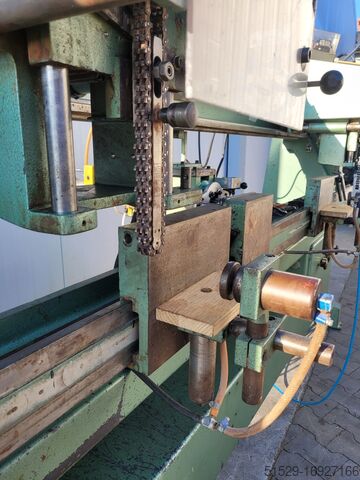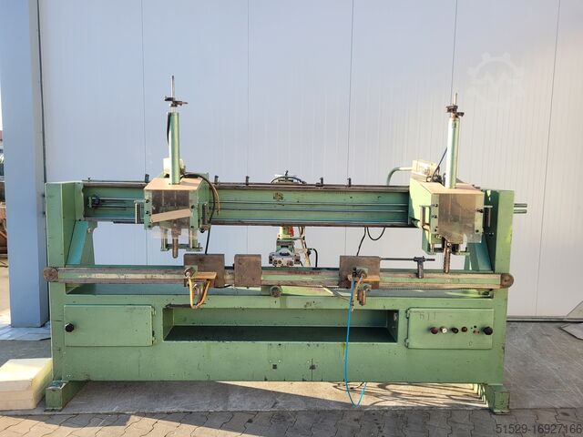 Arbeitslänge 255 см Bohrtiefe 80 см Maximale Materialbreite 140 см Maximale Materialhöhe 16 см Mindestmeißelabstand 50 см Schlitztiefe 14 см Motoren von Aggregaten in Meißelmaschinen 1,1 kW Bohraggregatmotor 1,47 kW Zwei pneumatische Spanner Maschinenabmessungen: 325 см Länge 110 см Breite 235 см Höhe