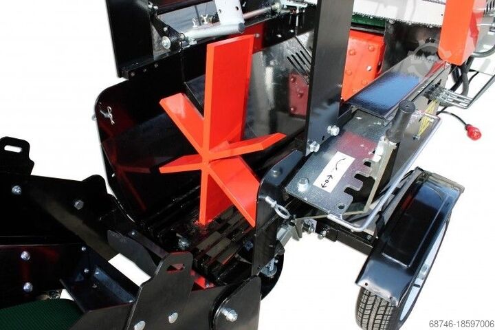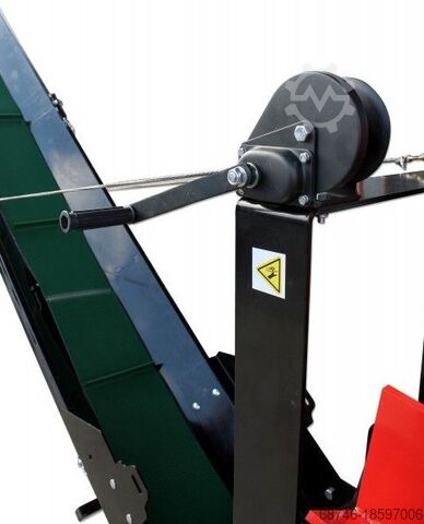 Дровокол оснащен ленточным конвейером длиной 3,2 м, который может транспортировать обработанную древесину непосредственно в прицеп. Максимальная высота подачи древесины по ленточному конвейеру составляет 2 м.