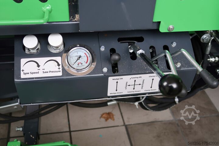 Гидравлическая система: Станок оснащен гидравлическим пильным полотном, давление и скорость пиления которого можно регулировать индивидуально. Гидравлическое прижимное устройство обеспечивает надежную фиксацию древесины на месте во время процесса раскалывания.