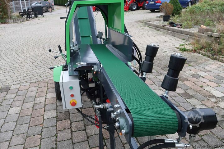 Ленточный конвейер: подающий конвейер (1,8 м) облегчает подачу бревен, а поворотный разгрузочный конвейер позволяет легко транспортировать расколотые дрова.