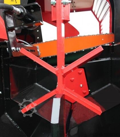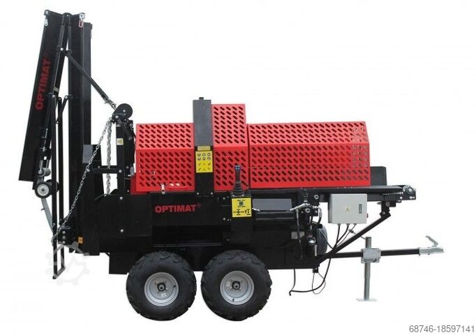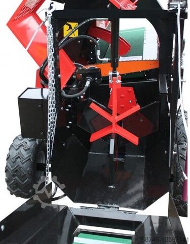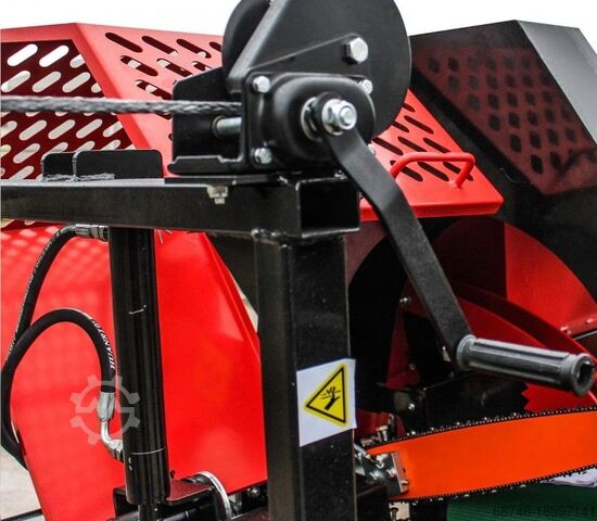 Для машины доступны различные дополнительные принадлежности, такие как гидравлический механизм подачи бревен и клинья.