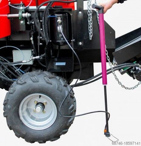 Дровокол оснащен ленточным конвейером длиной 3,5 м, который может транспортировать обработанную древесину непосредственно в прицеп.