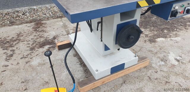 Башмак наклонен в сторону вручную; вертикальное положение определяется съемным штифтом. В столе, коаксиально с инструментом, находится выдвижной штифт D = 10 мм. После выдвижения и установки подшипника он обеспечивает ведение шаблона с заготовкой. Зажимы, которые могут