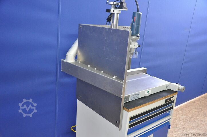 Тумба доработана предыдущим владельцем: алюминиевый лист с интегрированной возможностью подключения системы отсоса (см. фото).