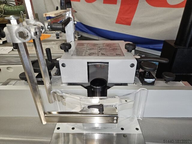 исполнение "L" с двусторонним удлинением стола и выдвижной опорой для заготовок с аварийной кнопкой выключения,