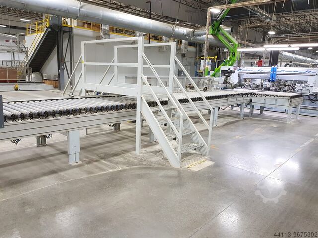 2-Х СТОРОННЯЯ форматно-кромкооблицовочная линия, макс. рабочая ширина - 2500мм. Линия оснащена автоматической системой погрузки и выгрузки панелей.