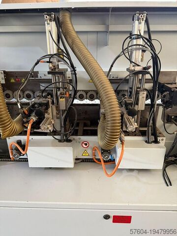 Power Touch control (сенсорная система) с 21-дюймовым видео Full HD Высота панели 60 мм ПВХ/АБС 3 мм Твердая древесина до 12 мм Скорость подачи до 20 м/мин Рабочая высота регулируется электроникой с помощью ЧПУ Направляющая поддержки панели с холостыми ходами Боковой роликовый конвейер с холостыми ходами для поддержки панели Антиадгезионная группа Двухмоторная выпрямительная группа Плита держателя рулона Группа склеивания клеем EVA с предварительным плавлением и клеевой ванной Группа прижима кромок на прямых профилях с прижимными роликами, автоматически регулируемыми с помощью числового программного управления Группа обрезки концов с автоматической регулировкой наклона Двухмоторная группа снятия фаски с регулировкой 2-моторная многофункциональная группа закругления (снятие фаски + закругление) Группа зачистки кромок с электронной регулировкой с помощью числового программного управления Группа зачистки клея Щеточная группа Антиадгезионная группа