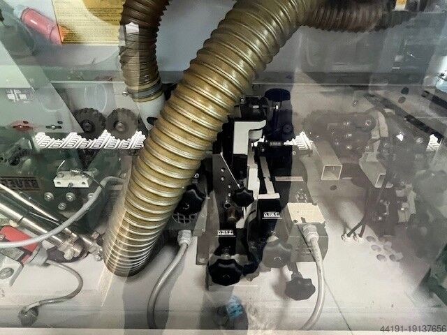 Прессующая зона с пневматически приводимым главным прижимным роликом и специальными дополнительными роликами для уплотнения верхнего и нижнего клеевого шва.