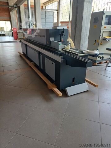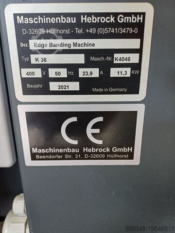 Кромкооблицовочный станок Hebrock K36 с системой управления PLC, необслуживаемым и покрытым быстросъёмным нагревающим бачком с предварительной подготовкой для быстрой замены нагревающего бачка.