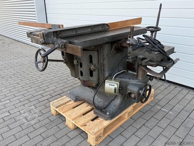 Трёхфункциональный комбинированный станок: форматно-раскроечная пила, долбёжный и фрезерный станок Kirchner Leipzig. Без фрезерного шпинделя. Мотор: 3 кВт.