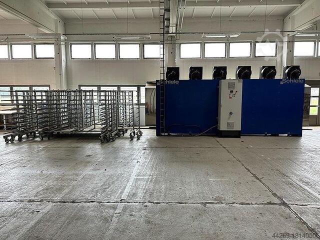 Инфракрасная сушильная система Schiele IR dryer (стационарная сушилка HIR) Включает 20 тележек для стеллажей для быстрой сушки заготовок на тележках с инфракрасными излучателями и вентиляторами.