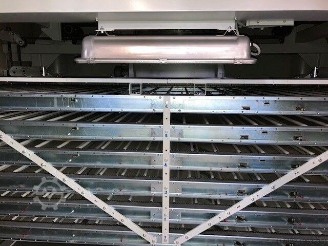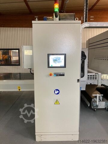 Моторизованный загрузочный конвейер, антистатический модуль, окрасочный робот с 2 пистолетами, боковой пандус, выгрузочный конвейер, шестиярусный сушильный тоннель 1300 x 4500 мм, насос высокого давления для лака/краски или водной краски.
