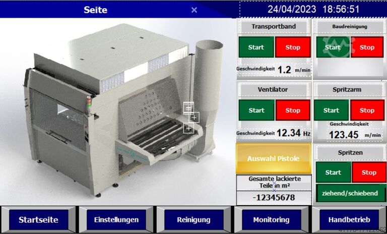 С 1 насосом HD Bings Marple 8/25 до 175 бар и 4 пистолетами-распылителями Airmix Sames-Kremlin AVX.