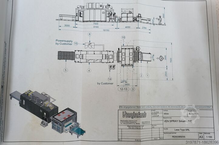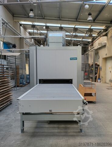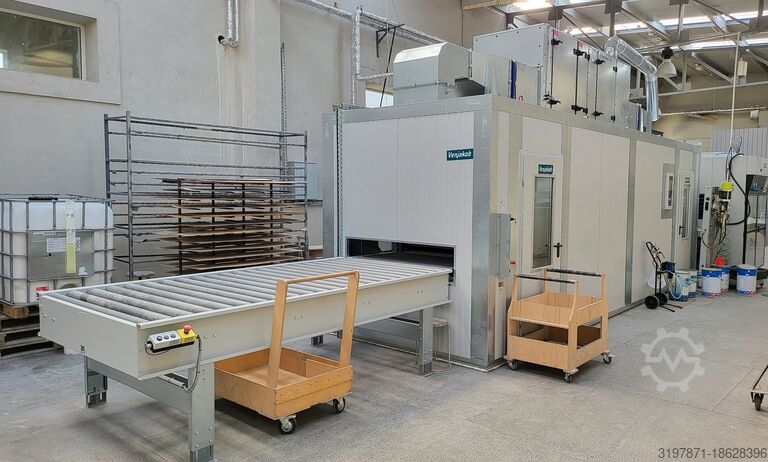 Автоматизированная линия окраски распылением и сушильный туннель Venspray One использовались всего несколько часов. Ширина 1300 мм, производительность 120 кв.м/час, 6 этажей, сушильный туннель, подающий конвейер Ncec R Nc Ifsv Et Hponsu