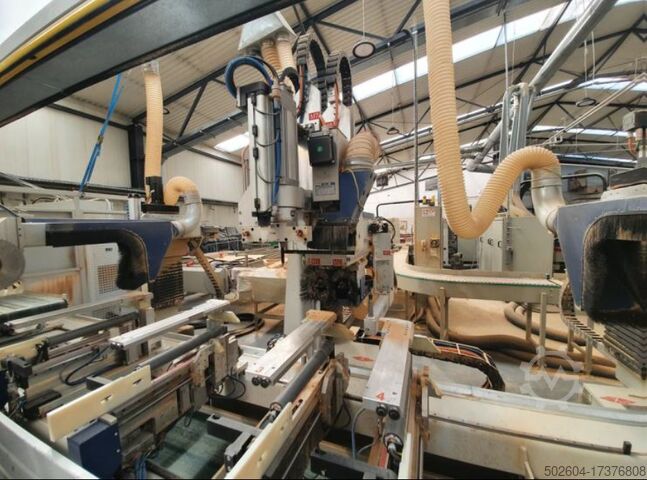 Специальные стенды для загрузки полностью собранных дверных косяков. Стенд для фиксации деталей разделен на 4 элемента, регулируемые по направляющим с системой шариковых рельсов, автоматическое запирание/отпирание и позиционирование осуществляется центральной головкой (ЧПУ).