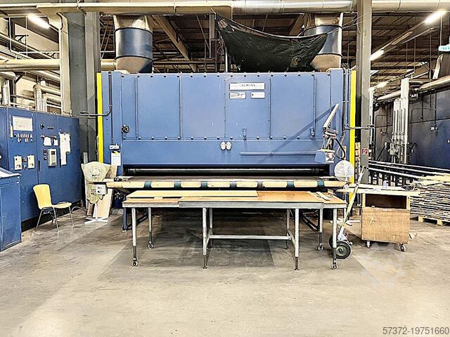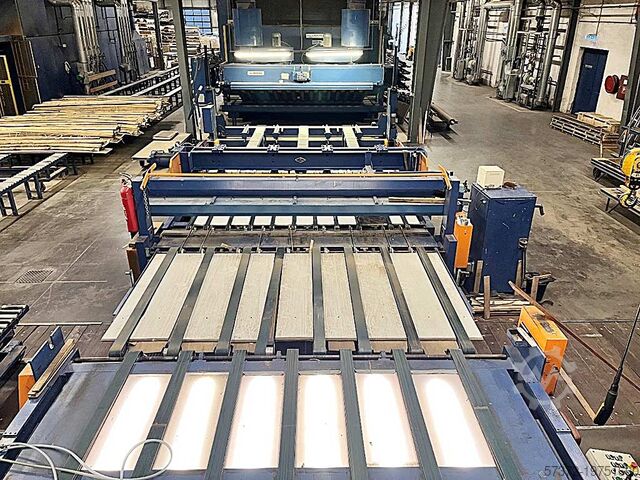 В наличии имеется линия по производству шпона Cremona. 1) Лущильный станок Cremona с опцией Staylog, рабочая ширина: 3300 мм. Включает гильотину для шпона с камерным управлением, гильотину для резки по фиксированному размеру или ручную резку. 2) Сушильная установка Cremona, секций: 6, температурных зон: 2, секция охлаждения: 1, ширина: 4200 мм. Производительность: около 80 листов/мин. Включает вакуумную подачу. Документация в наличии. Возможен осмотр на месте.