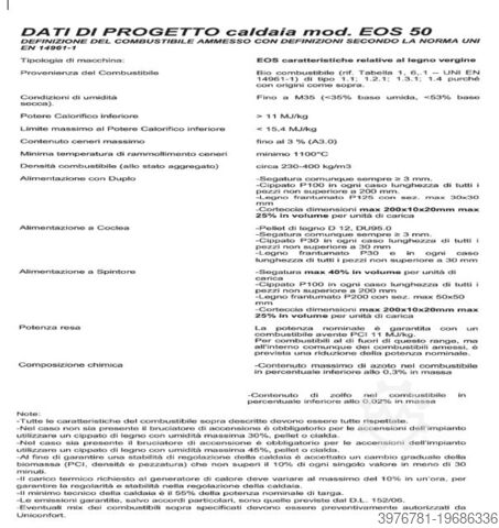 КОТЕЛ НА ТВЁРДОМ ТОПЛИВЕ С АВТОМАТИЧЕСКОЙ ЗАГРУЗКОЙ МОД. EOS 50, В КОМПЛЕКТЕ С БУНКЕРОМ ДЛЯ АВТОМАТИЧЕСКОЙ ЗАГРУЗКИ, СООТВЕТСТВУЮЩЕЙ КРЫШКОЙ И КОНТУРОМ ЦИРКУЛЯЦИИ И АККУМУЛЯЦИИ ВОДЫ, КАК НА ФОТО. ПОЛНОСТЬЮ ИСПРАВЕН. СЕРИЙНЫЙ НОМЕР: 2667. ГОД ВЫПУСКА: 2014. ТЕПЛОВАЯ МОЩНОСТЬ НА ТОПКЕ: 650 КВТ. ПОЛЕЗНАЯ ТЕПЛОВАЯ МОЩНОСТЬ: 550 КВТ. ПРИМЕНЯЕМЫЕ ЕС ДИРЕКТИВЫ: 2004/108/EC; 2006/95/EC. ДЕЙСТВУЮЩИЕ СТАНДАРТЫ: EN303-5; EN60335-2-102; EN14891-1.