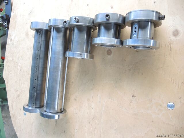 для кромкообрезных и многопильных станков PAUL KME 2 или BM, общая длина 420 мм, 160 мм или 105 мм, длина зажима 375 мм, 110 мм или 55 мм, отверстие Ø 60 мм, наружный Ø 75 мм, фланец Ø 120 мм, 2 внешних клина, возможны пильные втулки с левой или правой резьбой