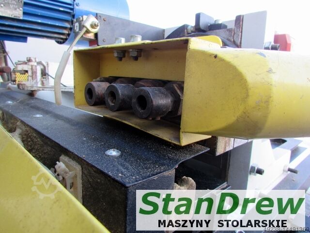 Управление станком понятное, простое и функциональное. Оно позволяет включать и выключать все агрегаты по отдельности, с дополнительным разделением на левую и правую стороны. Все агрегаты имеют независимый привод. Настройка правого агрегата осуществляется нажатием кнопок управления на панели управления. Приводной механизм представляет собой редуктор с электродвигателем, приводящим в движение трапециевидный винт. Для считывания и установки длины заготовки используется электронное управление US с панелью оператора и цифровым дисплеем. Эта система также отвечает за автоматическую коррекцию показаний счетчика при изменении углов резания на 45° и 90°. Она также отвечает за автоматическое базирование.