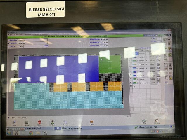 Числовое управление Osi Plus Программное обеспечение QUICK OPTI для оптимизации схем раскроя непосредственно на станке. Программное обеспечение для оптимизации резки OPTIPLANNING ПРОФЕССИОНАЛЬНАЯ версия Принтер этикеток со штрих-кодом - OS-Labelling Дополнительный ключ к программному обеспечению Office Электрический шкаф кондиционера Длина резки 4400 мм Ширина резки 4300 мм Выступ лезвия 90 мм Ручная загрузка передней панели Боковой выравниватель, встроенный в каретку лезвия 1 фиксированный передний стол из бакелита с системой воздушной завесы для разгрузки панелей (2050 x 850 мм) 3 регулируемых передних стола из бакелита с системой воздушной завесы для разгрузки панелей (2050 x 650 мм) Главный нож в сборе (макс. диаметр лезвия/мощность) 355 мм/11 кВт Подрезной блок (макс. диаметр лезвия/мощность) 200 мм/2,2 кВт Регулируемая скорость каретки лезвий Толкающая каретка с 9 захватами Скорость каретки лезвий 120 м/мин. Система Twin Pusher 1.2 с 1 дополнительным захватом на каретке толкателя (позиция 570 мм) для выполнения различных рисунков. резка одновременно ТЕХНИЧЕСКИЕ ДЕТАЛИ, СЛЕДУЮЩИЕ ПРОВЕРИТЬ