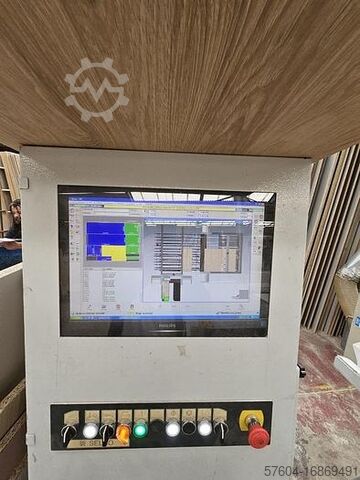 Угловая пила для панелей с автоматическим предварительным натяжением и двойной системой толкателей для оптимальной резки