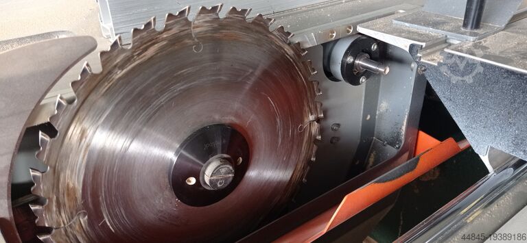 с подрезным двигателем 0,73 кВт, каретка 3200 мм, механический параллельный упор до 1350 мм, потребляемый ток 13,5A 400V 50Hz, макс. диаметр пилы 400 мм, основной мотор 5,5 кВт, патрубки отсоса 1x D=120 мм 1x D=80 мм, электрическая регулировка высоты, электрическая регулировка угла – как возвращено от клиента