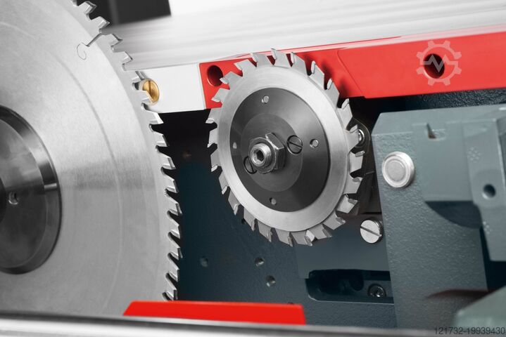 Моторизованное поднятие/опускание и наклон (0 – 46°) главного пильного диска с автоматической корректировкой высоты пропила при наклоне