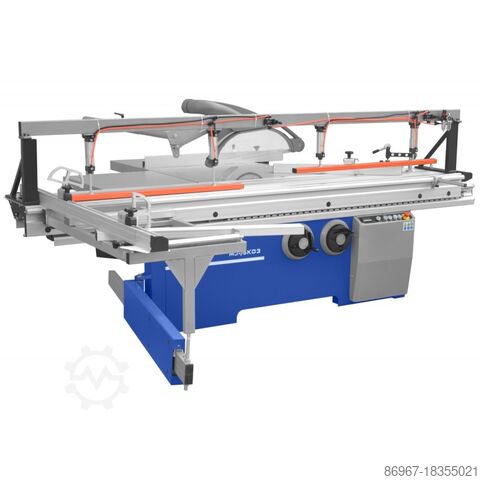 Профессиональный промышленный станок для обработки плит высокой плотности, плит МДФ, панелей АБС, ПВХ, массива дерева и других материалов размером до 3200х2800. Станок оснащен электрическим подъемом и опусканием пилы.