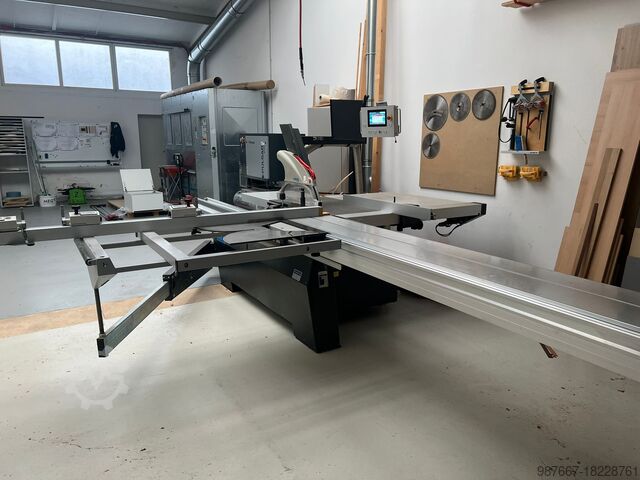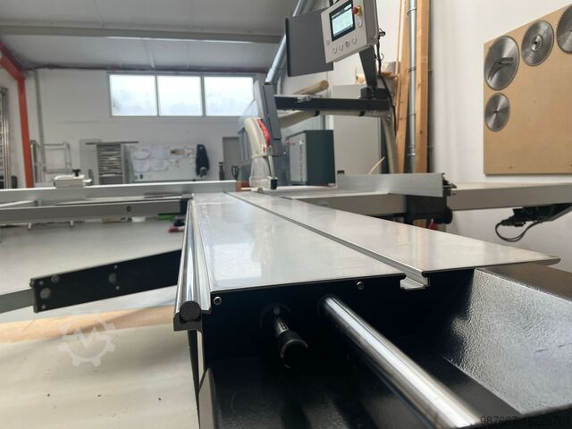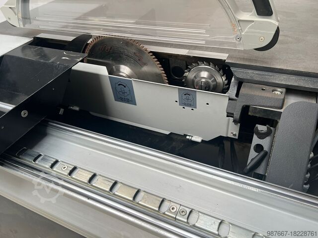 УСТРОЙСТВО ПРЕДВАРИТЕЛЬНОЙ ПОДРЕЗКИ AUTO-EPS 0,55 кВт (0,75 л.с.) Позиционирование электродвигателя для регулировки по горизонтали и высоте с помощью светодиодного дисплея и функции памяти; При включении подрезной пилы агрегат автоматически перемещается в заданные значения положения; При выключении агрегат автоматически перемещается под столом в боковое парковочное положение, что означает, что пилы диаметром более 350 мм также можно использовать, не снимая подрезные пилы.