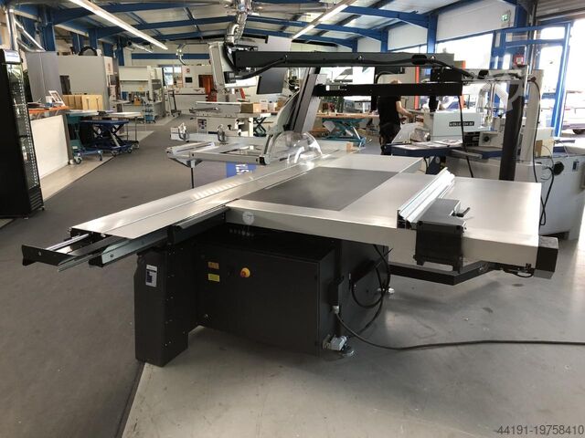 - 7” сенсорный экран для электромоторного позиционирования высоты реза, наклона пильного диска, параллельного упора, а также при необходимости для регулировки по высоте и по бокам скорорезки; база данных на 50 пильных дисков с индикацией текущей частоты вращения